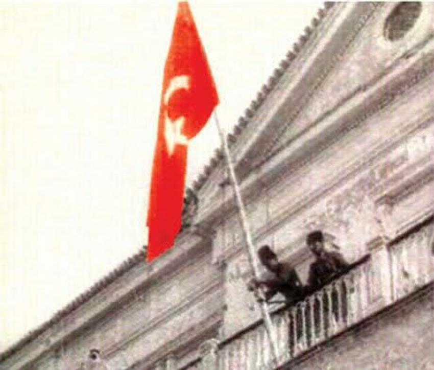 Είναι μια στιγμή πικρή που έχει καταγραφεί από κινηματογραφική μηχανή της εποχής.9 Σεπτέμβρίου 1922. Ο τουρκικός στρατός έχει μπει στη Σμύρνη. Μια έφιππη μονάδα κατευθύνεται στο κυβερνείο της πόλης που την έλεγαν “Παρίσι της Ανατολής”. Επικεφαλής της ομάδας ο λοχαγός Ζεκί ,που μαζί με τον λοχαγό Σεραφεντίν κατέβασαν την Ελληνική σημαία από το κυβερνείο και ύψωσαν τη δική τους. Την ίδια ώρα η Σμύρνη καιγόταν και ο πληθυσμός της σφαγιάζονταν.